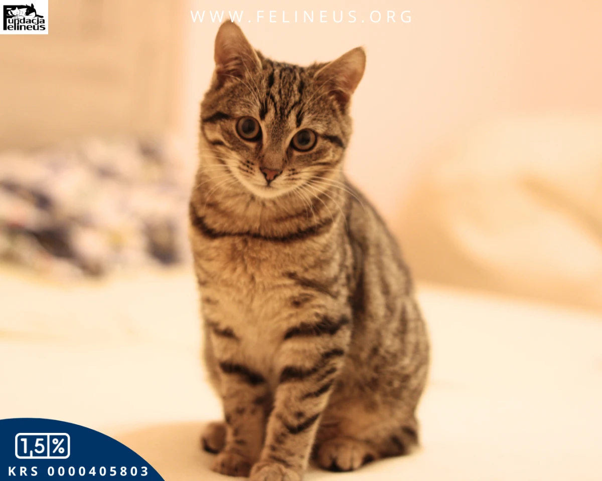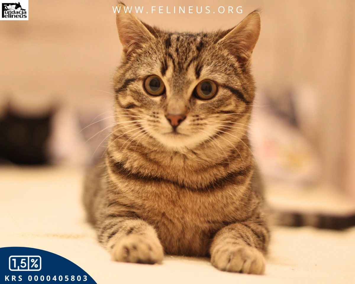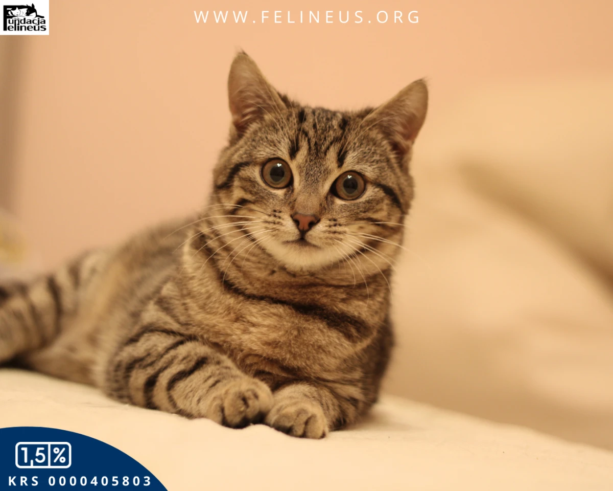 Płatek to bury kocurek, urodzony w październiku 2025 roku. Został znaleziony przy drodze, przy swojej martwej, potrąconej kociej mamie… Na szczęście choć z początku przestraszony i zdezorientowany, kiedy trafił do naszego domu tymczasowego szybko uspokoił się i zaufał opiekunce. Dziś daje się poznać jako bardzo proludzki, aktywny kot. Lubi wskakiwać ludziom na kolana i całować ich po twarzy. Jak każde kocie dziecko lubi też bawić się i poznawać otoczenie. Dogaduje się z kotami małymi i dużymi.