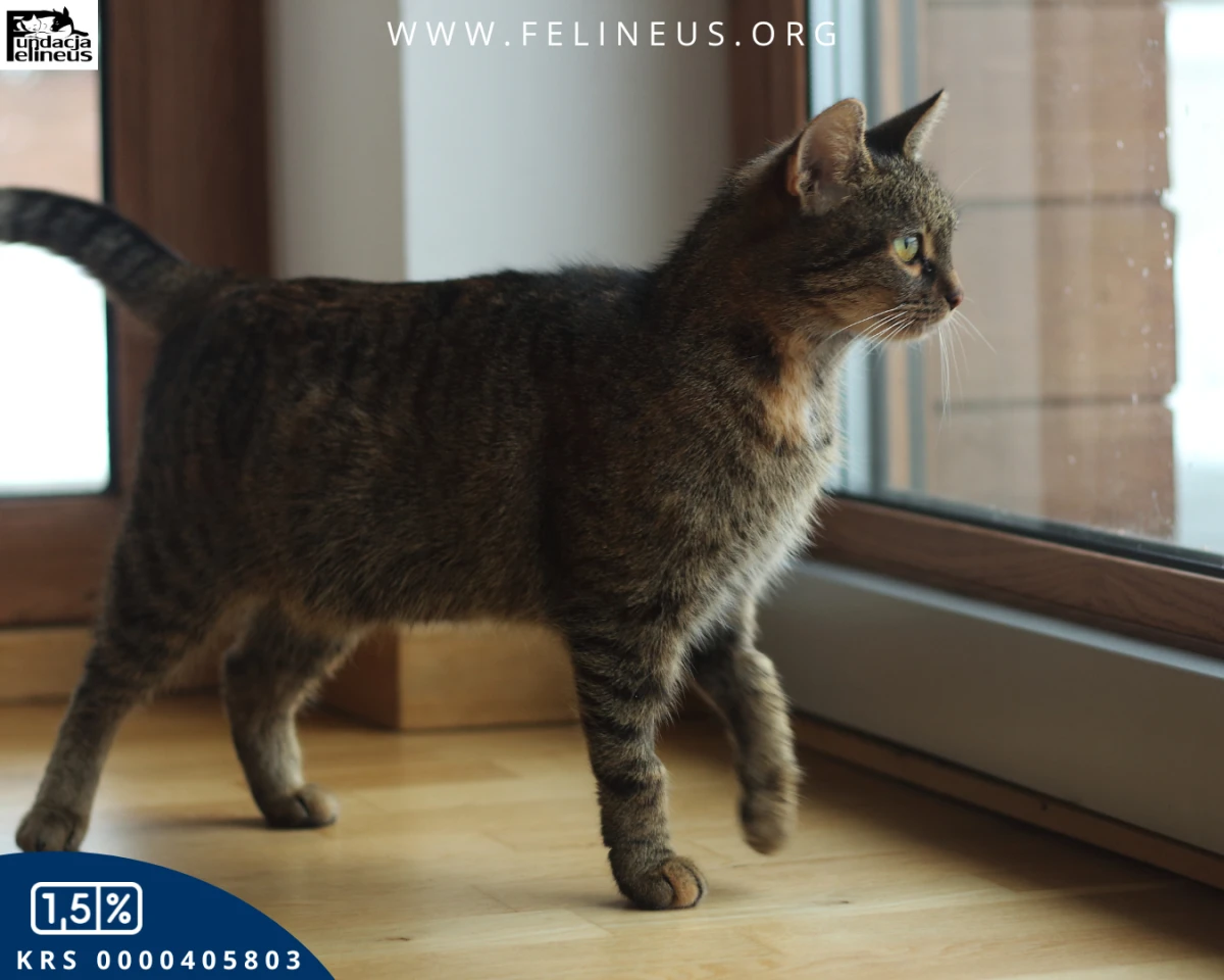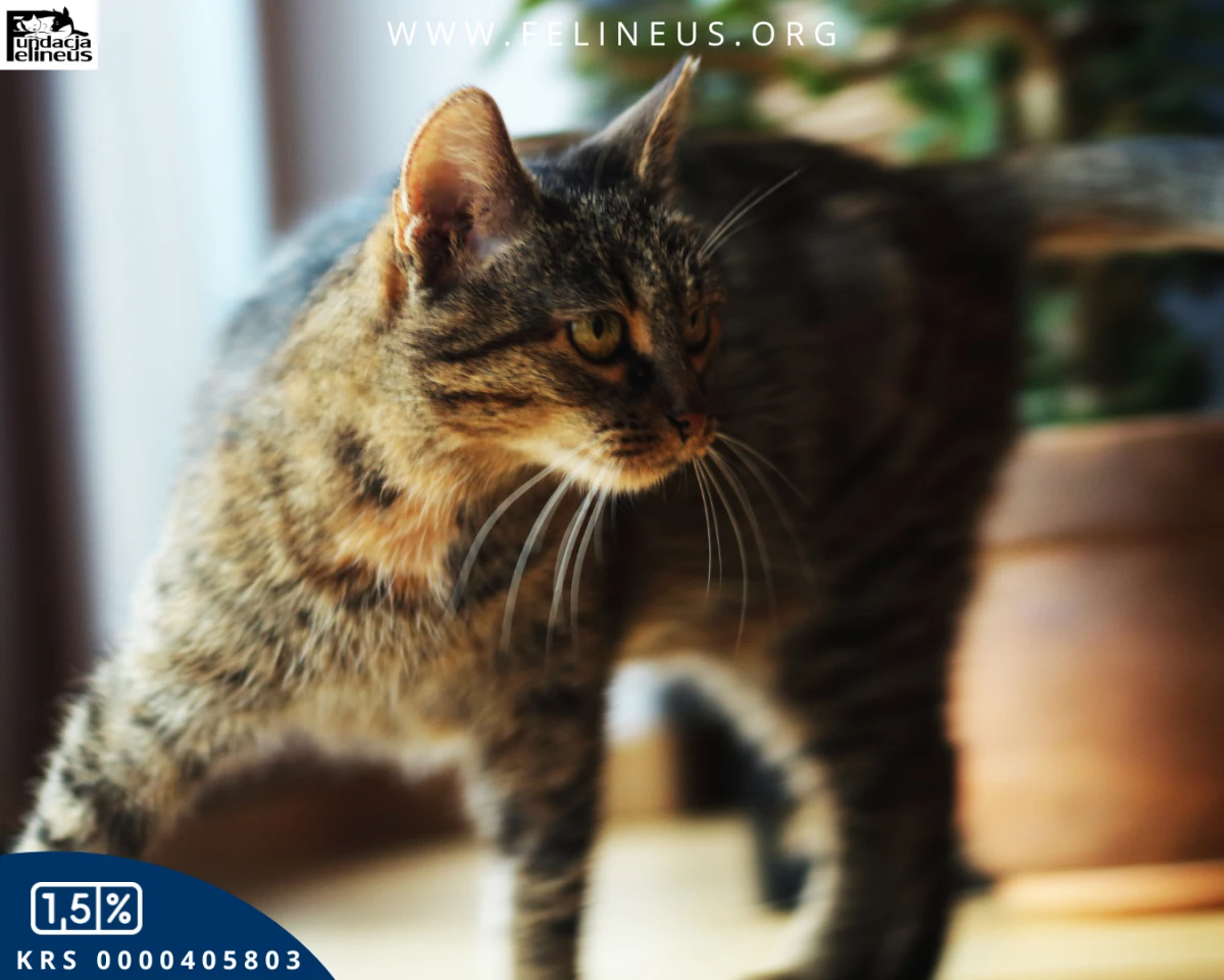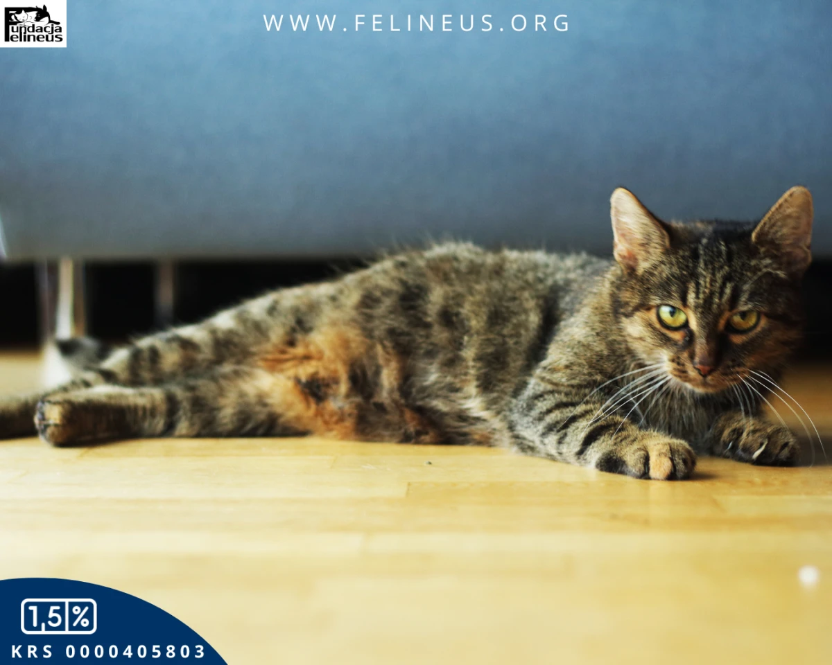 Rzepka to spokojna, łagodna kotka urodzona w 2023 roku. Szybko zaaklimatyzowała się i zaczęła zwiedzać dom tymczasowy, ale łatwo ją spłoszyć. Boi się jeszcze nieco gwałtownych ruchów i dźwięków. W trudnych sytuacjach cicho nawołuje opiekunów i w nich szuka oparcia.