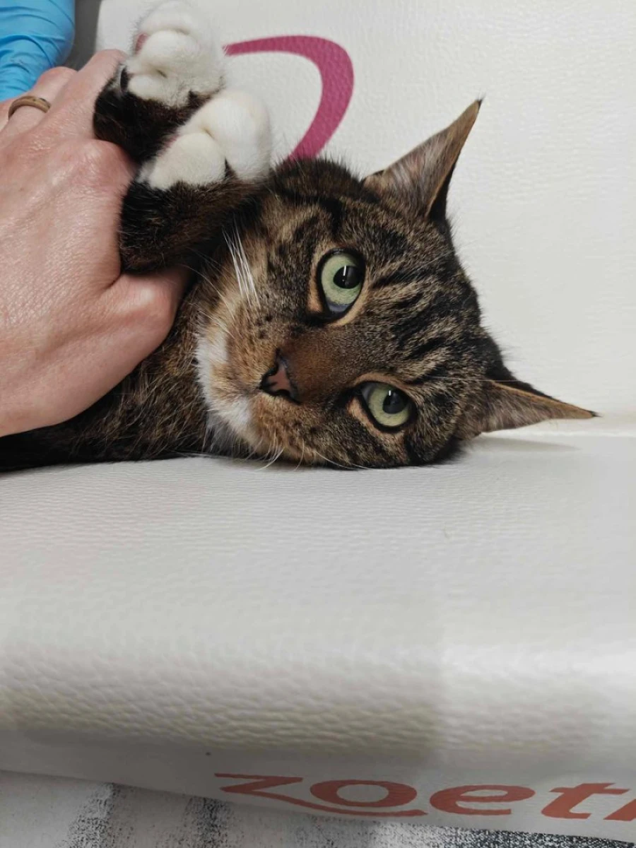 Skarpetka to młoda kotka, która dopiero poznaje uroki mieszkania w domu z człowiekiem. Jest jeszcze nieco nieśmiała i wystraszona, ale z każdym dniem zachowuje się coraz odważniej. Uwielbia bawić się wędką i polować na „ptaki”. Ma też słabość do męskiego kociego towarzystwa, zabiega o uwagę kocurków, przytula się i szuka kontaktu.