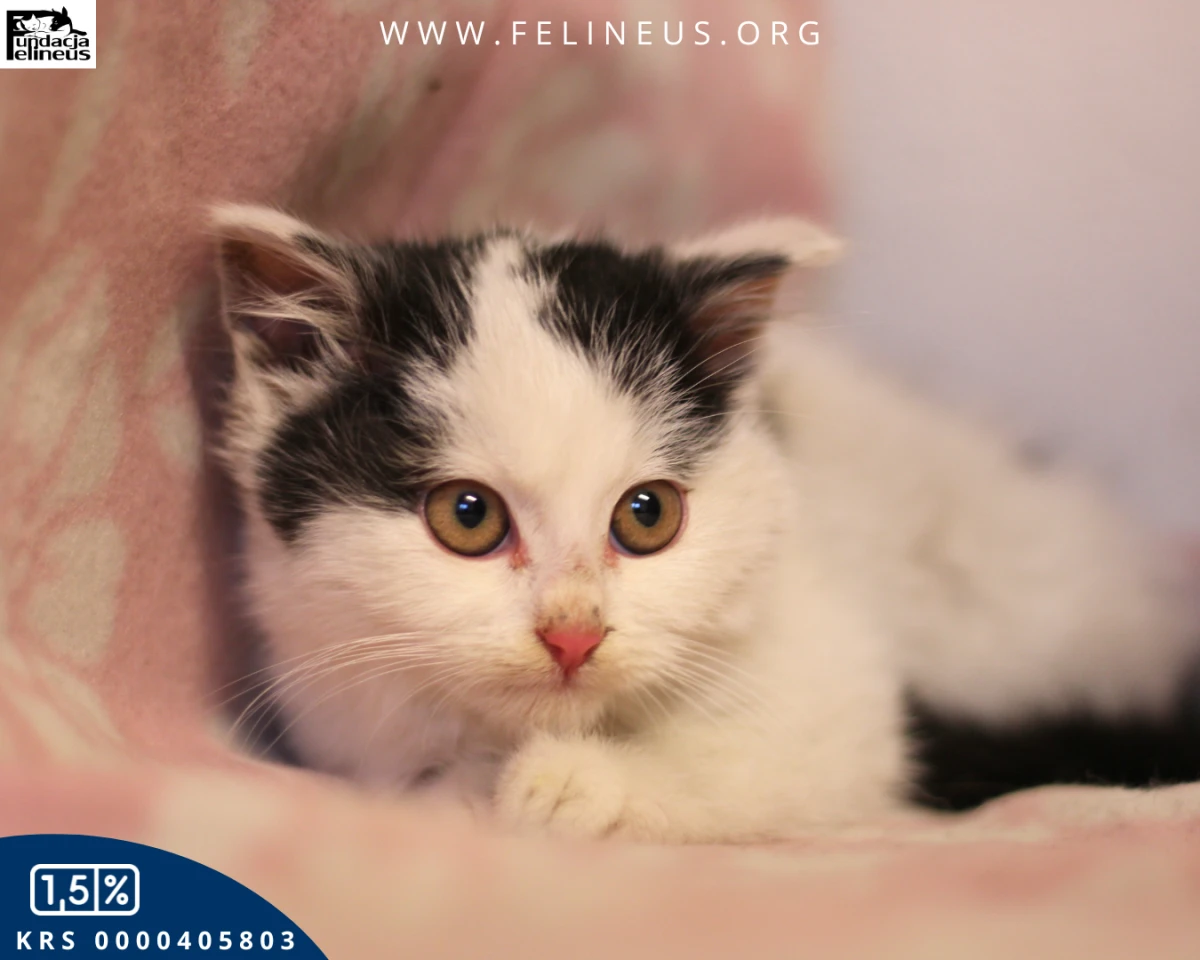Smerf, kocurek urodzony w październiku 2025 roku. Ten uroczy kawaler o pięknej urodzie i lekkim dystansie rozgląda się za swoim człowiekiem który poświęci mu troszkę swojego cennego czasu, by przekonać go do siebie. Ten puchaty gość z początku bywa lekko wycofany, ale smaczki bardzo szybko łamią lody. Poleca się do adopcji w pojedynkę bądź z bratem Szogunem, z którym tworzą duet idealny.