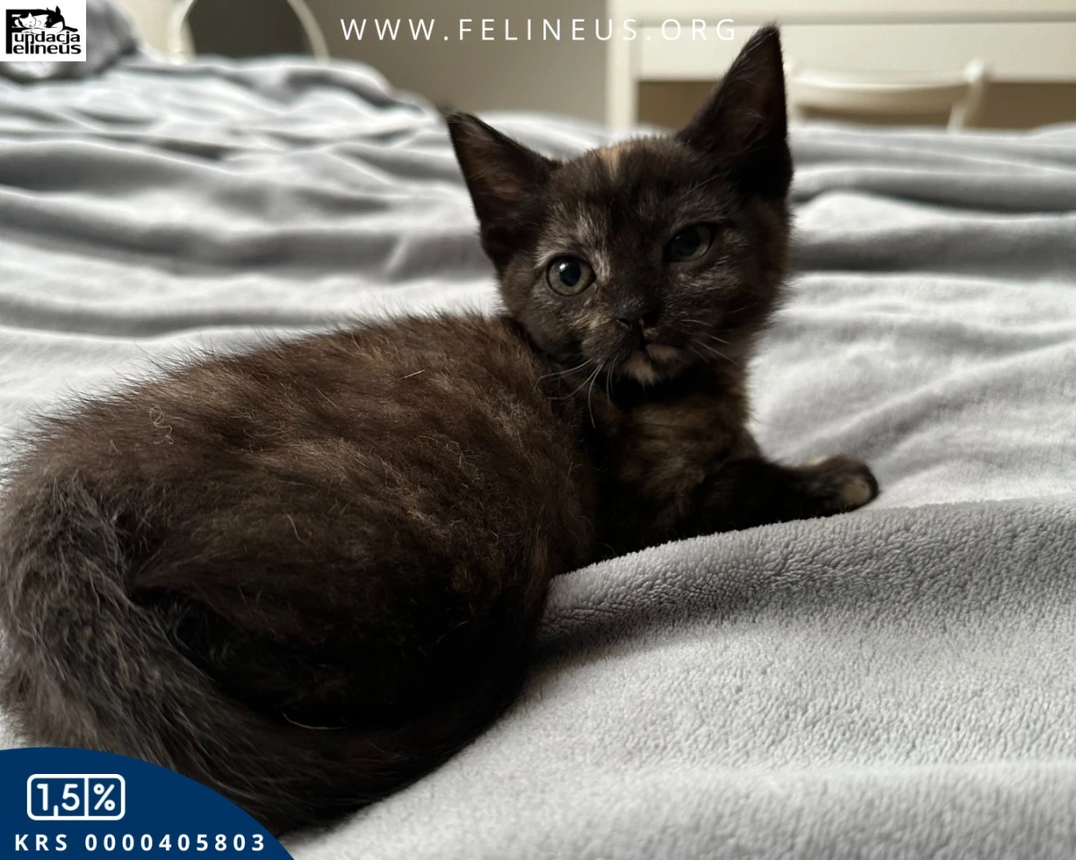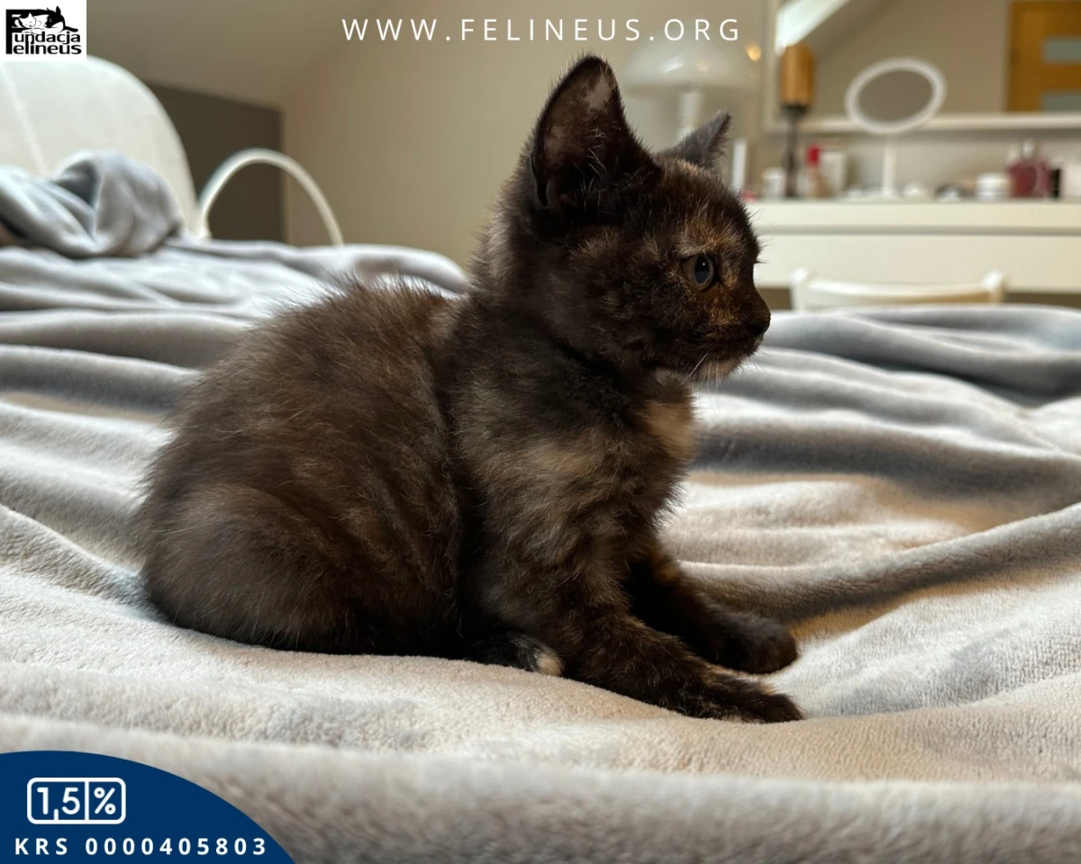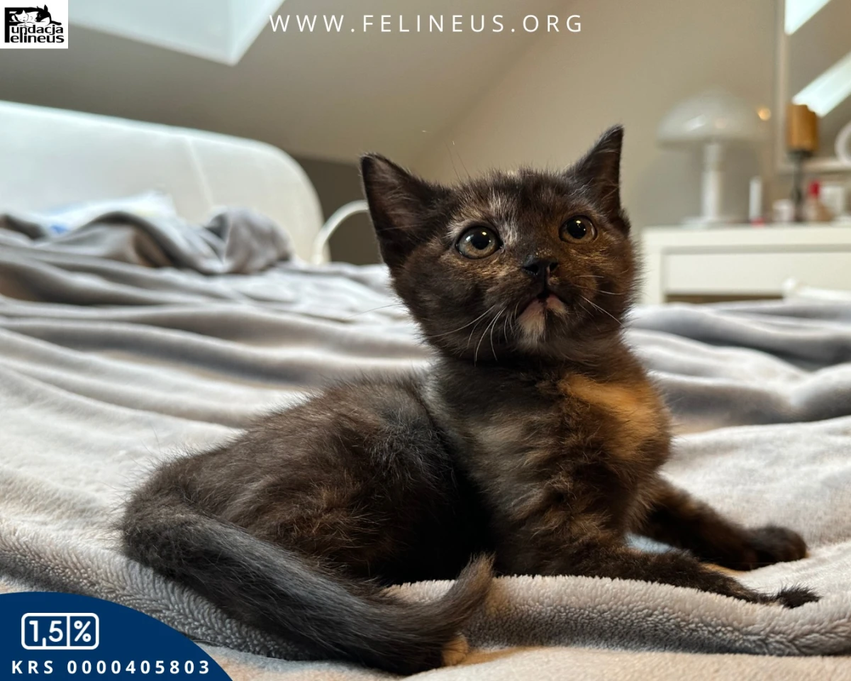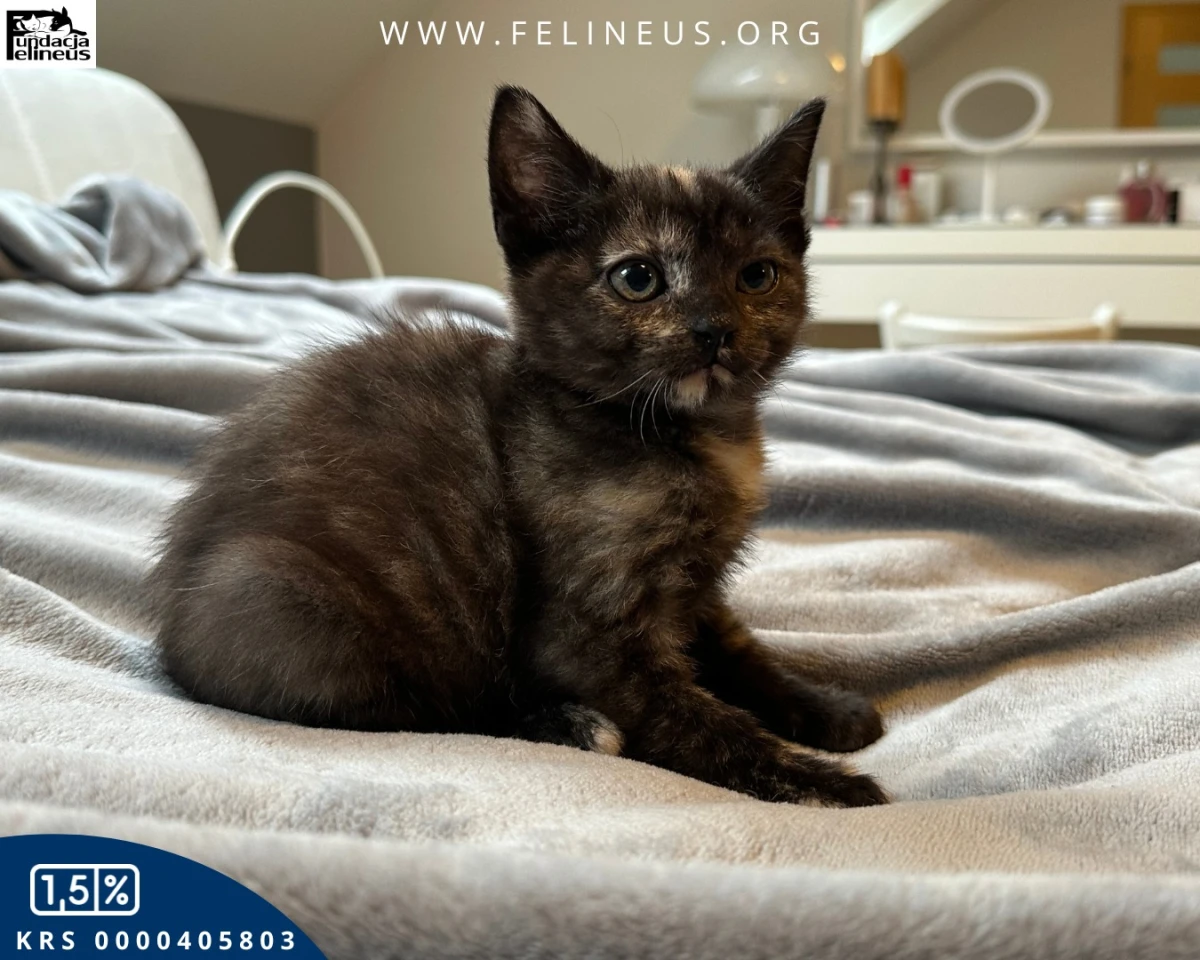 Violet – kotka urodzona początkiem października 2023 r. Violet to malutka kocia dama. Lubi zabawy pluszowymi myszkami, wspinanie się po drapaku. Wzięta na kolana zasypia wtulona w człowieka, a najchętniej robi to wraz z siostrami, z którymi kocha się bawić. Koteczka jest lekko niezdarna, zdarza się jej zataczać, a w trakcie zabawy czasami robi niekontrolowane przewroty – wynika to z delikatnej ataksji, która jest skutkiem przebytej panleukopenii, jednak w żadnym stopniu jej to nie przeszkadza. Violet szuka domu, w którym jest już koci rezydent lub domu, do którego pojedzie z którąś z sióstr (Amelią i/lub Arielką). Kotka szuka domu niewychodzącego, z zabezpieczonymi oknami i jeśli jest to osiatkowanym balkonem. Kotka jest odrobaczona i zaszczepiona, matka testowana FeLV/FIV negatywne.