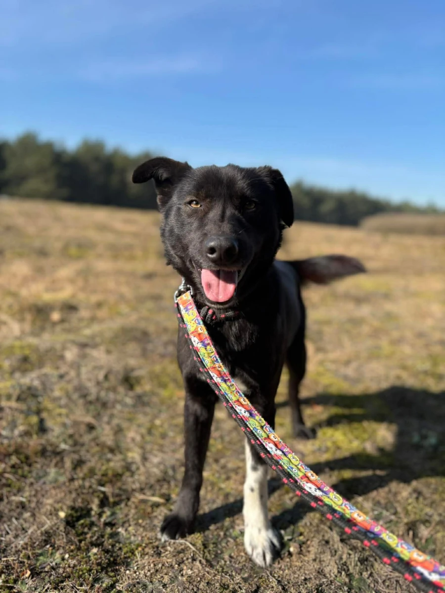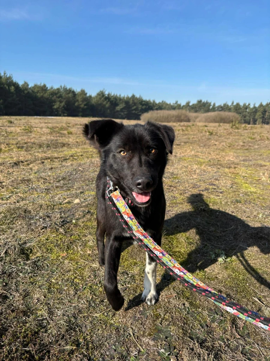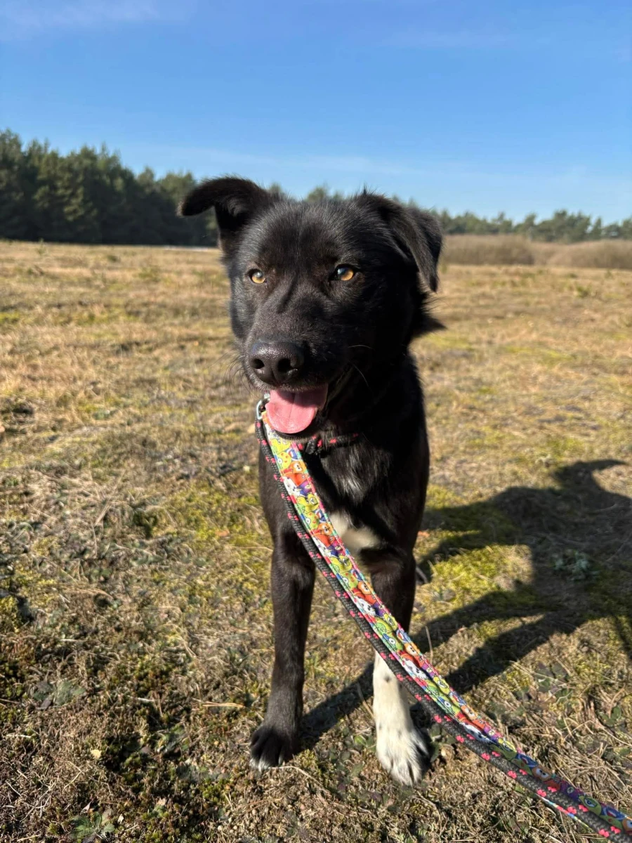 Chip to ok. 2-letni, czarny smukły piesek z uroczymi białymi „skarpetkami”. Jest zgrabny, sięga głową do kolana. Został znaleziony na wsi razem ze swoim bratem, Dale. Chip jest psiakiem delikatnym, wycofanym i nieśmiałym, ale z każdym dniem coraz bardziej otwiera się na kontakt z ludźmi. Jest ciekawski, a do jego serduszka najłatwiej trafić… smaczkami - wtedy jego zaufanie rośnie w oczach. Unika obcych, ale na widok znajomych opiekunów cieszy się jak szczeniak. Można go głaskać, czesać i choć jeszcze czasem czuć, że jest spięty przy dotyku to każdego dnia widać w jego zachowaniu coraz więcej zmian na lepsze!