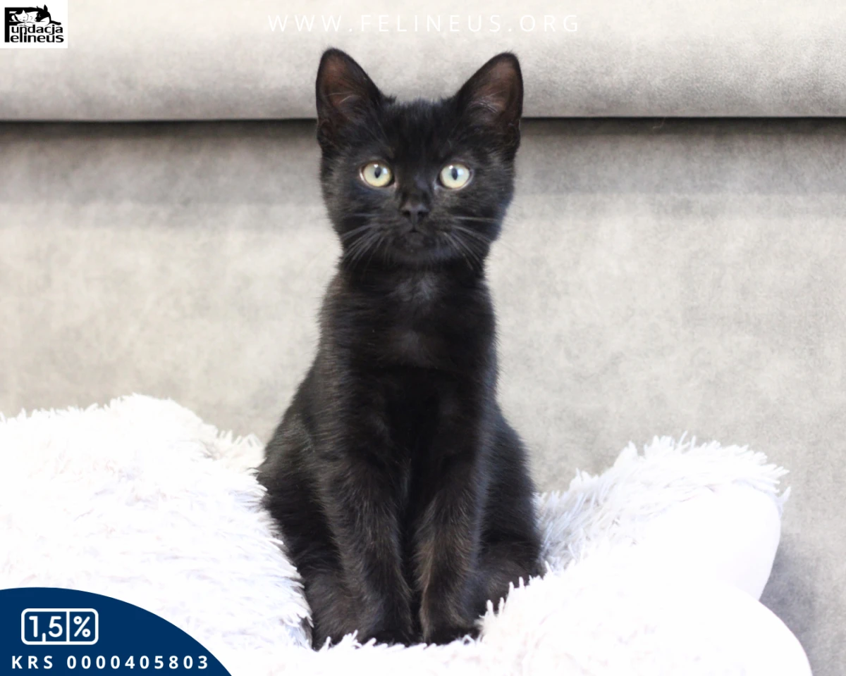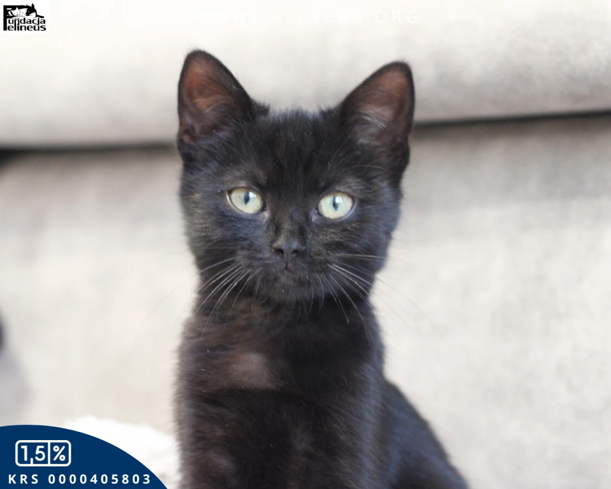 Zadra to śliczna, czarna kotka o aksamitnym futerku, urodzona w lipcu 2025 roku. Choć z pozoru to mała zadziora, nieco ostrożna w kontakcie z obcym, to w głębi kociego serduszka jest najukochańszą i dobrą Istotką. Jeśli ktokolwiek w domu gorzej się poczuje, lub jest smutny, ona pierwsza wyczuje, że coś jest nie tak. Wtedy przychodzi, wtula się i swoim mruczeniem odgania wszystko co złe, niczym magiczny czarny kot. Jak każdy młody kot uwielbia zabawę, zarówno tę z człowiekiem, jak i wszelkie szaleństwa w doborowym kocim towarzystwie. Ale nawet w szaleńczej gonitwie czy wspinaczce każdy jej ruch jest pełen gracji i uroku. Bo Zadra oprócz tego, że z niesamowitym charakterem jest także przepiękną kocią damą. Kotka szuka kochającego domu, w którym będzie mogła odprawiać swoje kocie czary. Lecz by uniknąć porwania jej przez złe duchy okna oraz balkony powinny być zabezpieczone siatką. Zadrusia chętnie pojedzie do nowego domu z innym kociakiem z rodzeństwa lub zapozna nowego, kociego przyjaciela. Ale jeśli masz dużo czasu na kocie zabawy i głaski, może zostać jedynaczką.